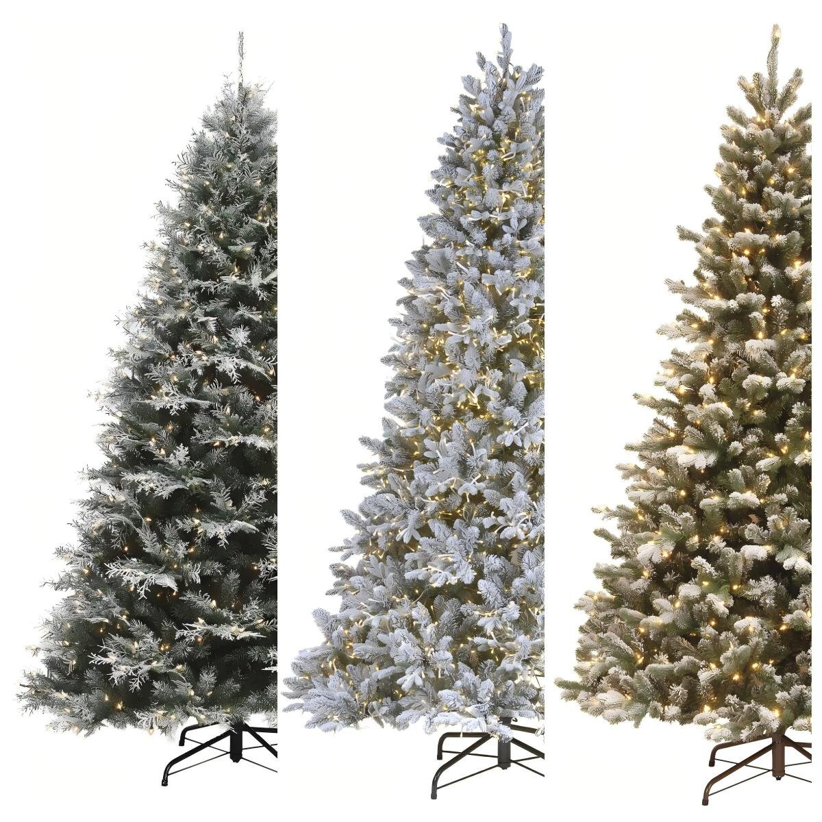 Artificial Christmas trees with flocked snow finishes designed for